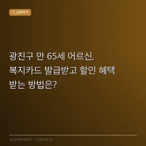 서울특별시 광진구에 거주하는 만 65세 이상의 어르신들은 ‘어르신복지카드’를 발급받을 수 있습니다. 이 카드는 경로우대업소에서 할인 혜택을 제공받을 수 있는 중요한 수단입니다. 복지카드는 어르신의 개인정보인 성명, 주소, 사진이 포함되며, 응급 상황에 필요한 연락처와 건강정보도 추가 기재됩니다. 이를 통해 어르신들이 보다 안전하고 편리하게 사회생활을 영위할 수 있도록 돕는 것이 이 제도의 주된 목적입니다.