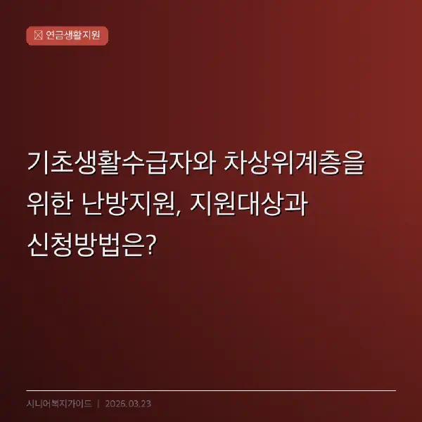 수급 조건과 지급 금액 # 저소득층 에너지효율개선(난방지원)의 지원 대상은 국민기초생활 보장법 제2조 제1호에 규정된 국민기초생활 수급자와 제2조 제10호의 차상위계층입니다. 또한, 복지 사각지대에 해당하는 일반 저소득 가구 중 주택 에너지효율이 불량하다는 추천을 받은 자도 지원받을 수 있습니다.